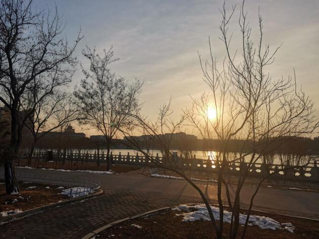 回到了家乡,刚下车的那一刻,冰冷的空气便前仆后继的钻入鼻腔,只有来到东北才能体会到,冷其实也是一种味道。恬静的林间小道已被冰雪覆盖,一望无际的田野已是银装素裹,大道两旁的树上开满了银色的花朵,在银白的枝干上雀跃着,偶尔也会在寒风的吹拂下,抖落下一些纯白的花屑。只有回到东北才能体会到的冰雪之美,已经成为了远行人的思想记忆,蔚蓝色的天空与银白色的冰雪互相应和,以一种协调的美短暂而又永久的停留在东北的冬季。